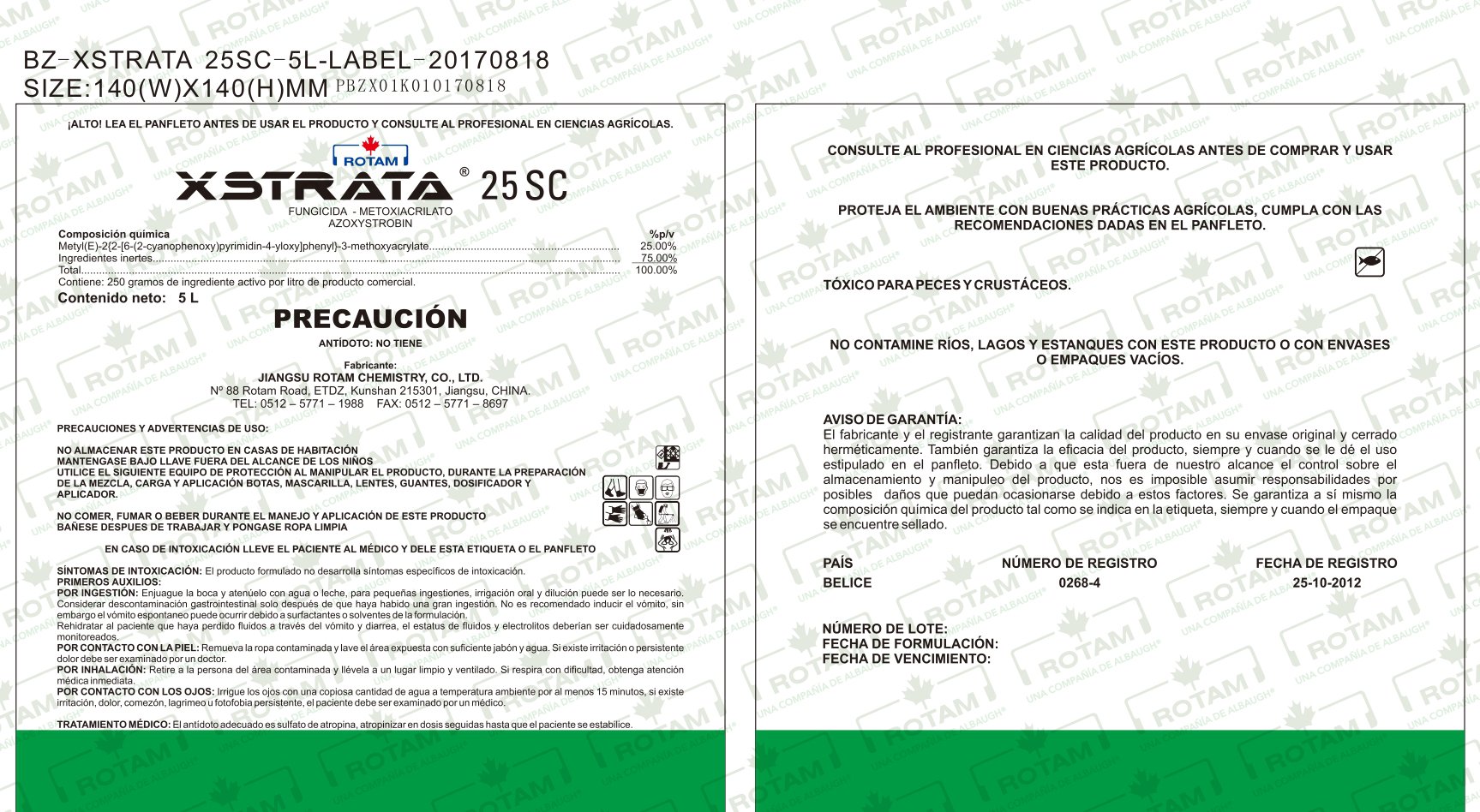 Method of Action: XSTRATA® 25 SC is a systemic fungicide, protective, curative, and antisporulant. It inhibits the germination of spores and the growth of the mycelium, with a slow release, with lasting action over time. It has optimal efficacy when applied preventively or early in the onset of symptoms since its control is maximum in the germination and initial infection of sensitive pathogens.