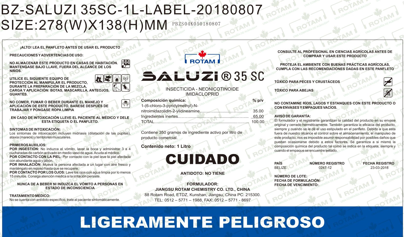 Mode of Action: SALUZI® 35 SC systemic translaminar insecticide works through stomach ingestion and contact action. Plants take imidacloprid easily by the roots, distributing it acropetally for control of pest and soil insects in agricultural crops.