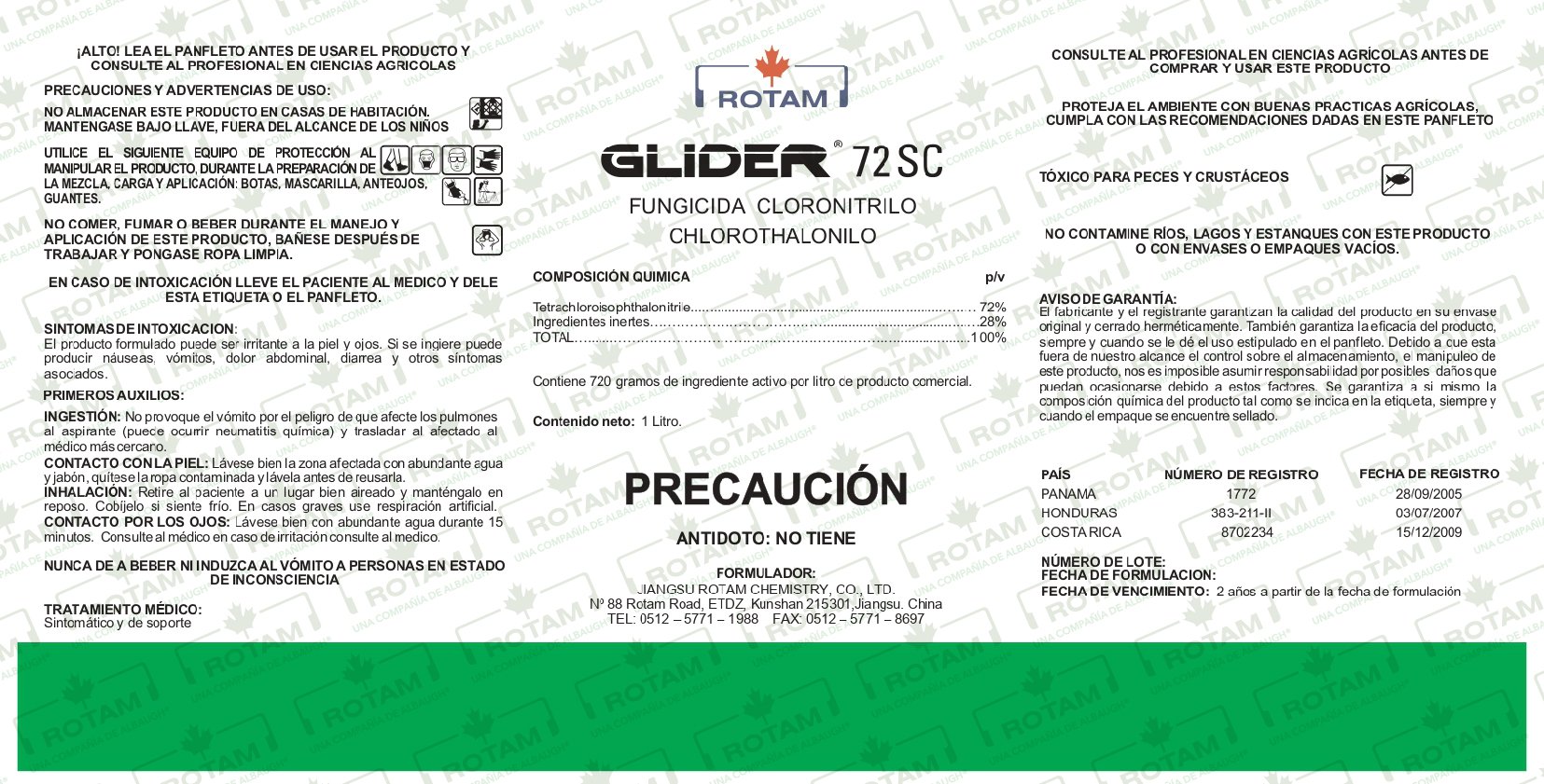 GLIDER 72 SC is a chlorothalonil-based fungicide of contact action, protectant for preventive application in the control of a wide range of pathogenic fungi and crops.