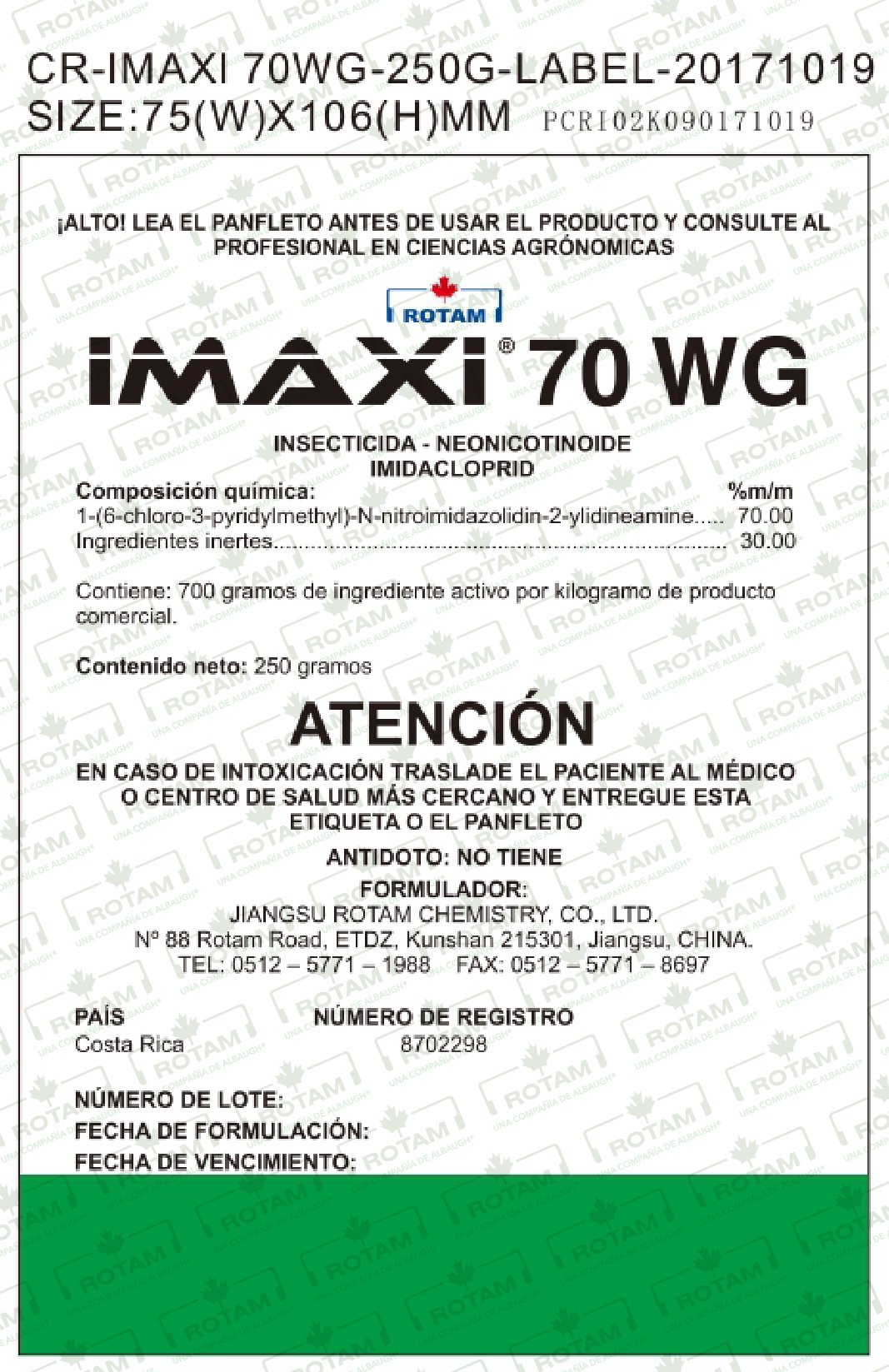 IMAXI 70 WG translaminar systemic insecticide with stomach and contact action. Controls pest and soil insects, suckers, chewers, leafhoppers and termites in agricultural, grass and ornamental crops.