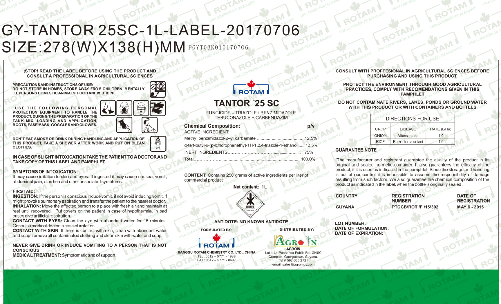 Modo de acción: fungicida sistémico con acción protectora, curativa y erradicante. Cuando se rocía sobre el follaje, se absorbe rápidamente en el tejido verde de las plantas y se transloca principalmente acropetamente.