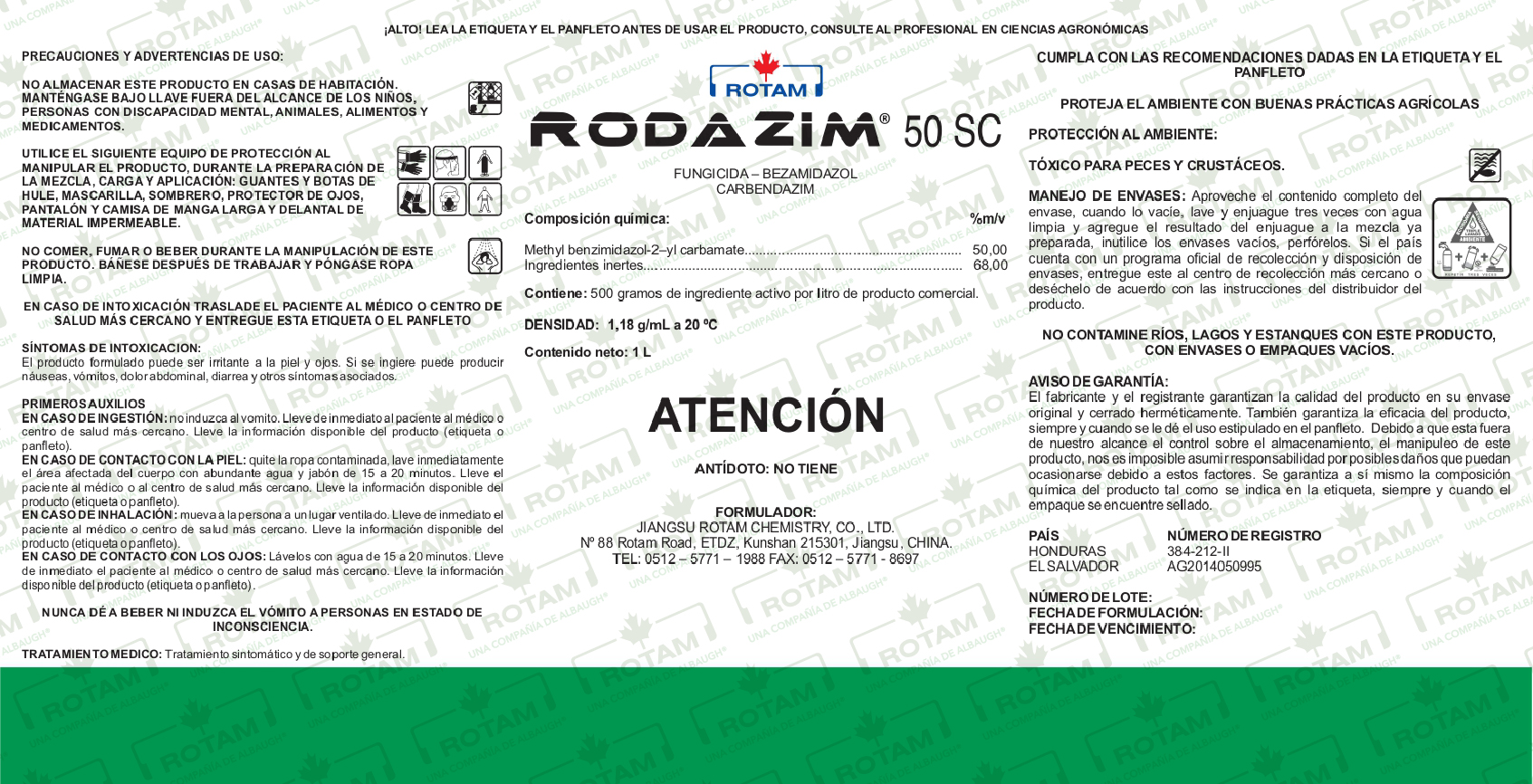 - RODAZIM 50 SC is a fungicide based on carbendazim, systemic and therefore curative of the group of benzimidazoles. It acts by inhibiting the polymerization of tubulin, a protein essential for cell division in a wide range of phytopathogenic fungi. In foliar application it behaves as a translaminar fungicide.
