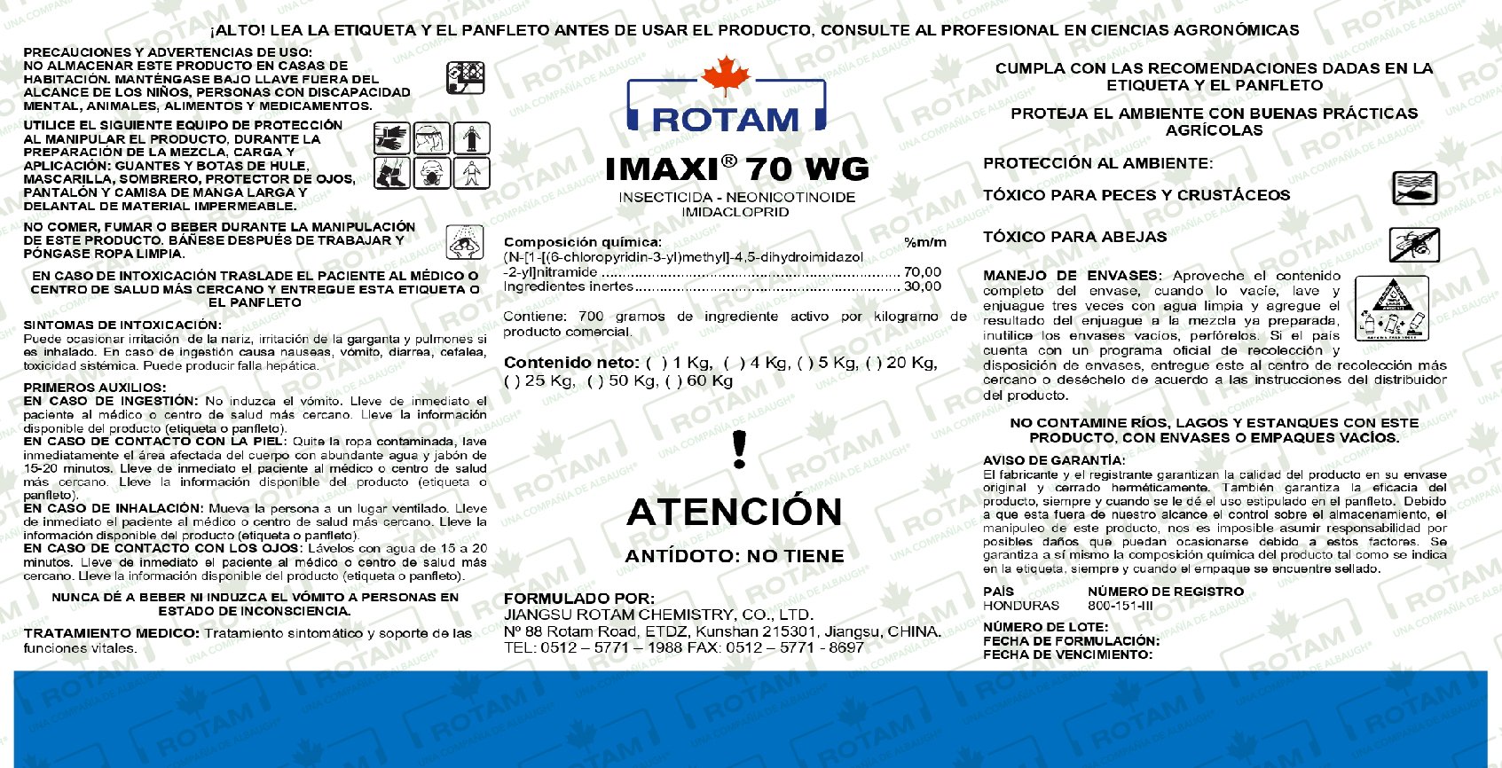 IMAXI® 70 WG es un insecticida que actúa en forma sistémica, por ingestión y por contacto. En la planta es un insecticida con un fuerte efecto sistémico con movimiento acropetal.