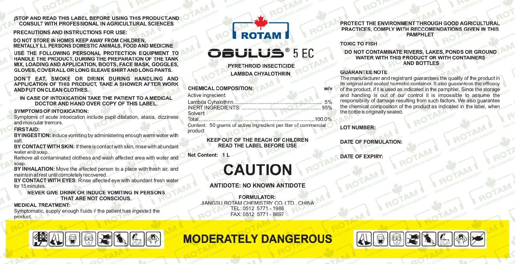 Modo de acción: OBULUS® 5 EC es un insecticida no sistémico con propiedades de contacto, estómago y repelentes. Tiene un rápido derribo y una actividad residual prolongada y causa hiperacción, parálisis, convulsiones y, finalmente, la muerte de los insectos. Cubre un amplio espectro de control de plagas de insectos en muchos cultivos.