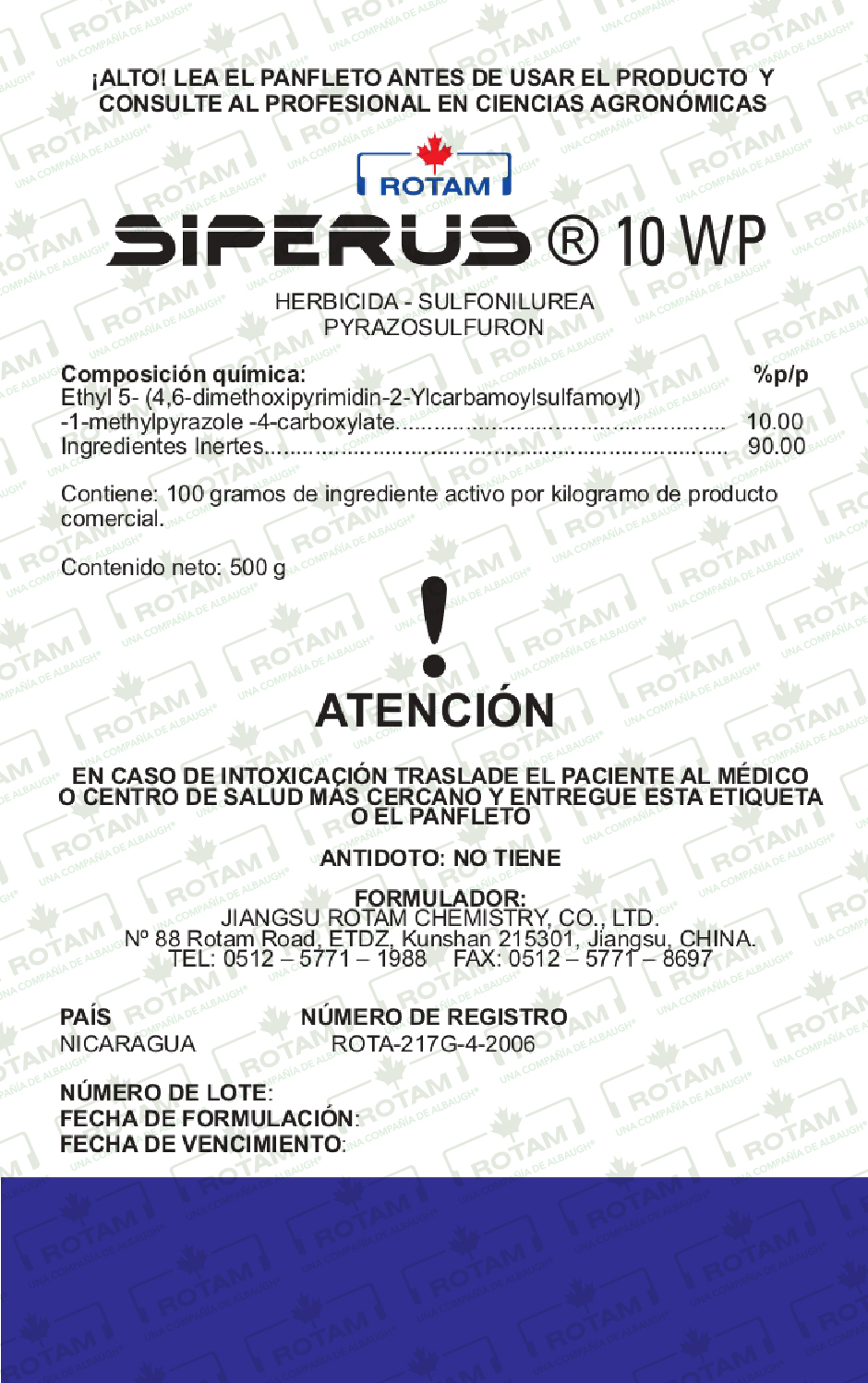 SIPERUS 10 WP is a selective herbicide, of the sulfonylurea family, highly effective at low doses in the control of sedge weeds and broad leaves in rice.