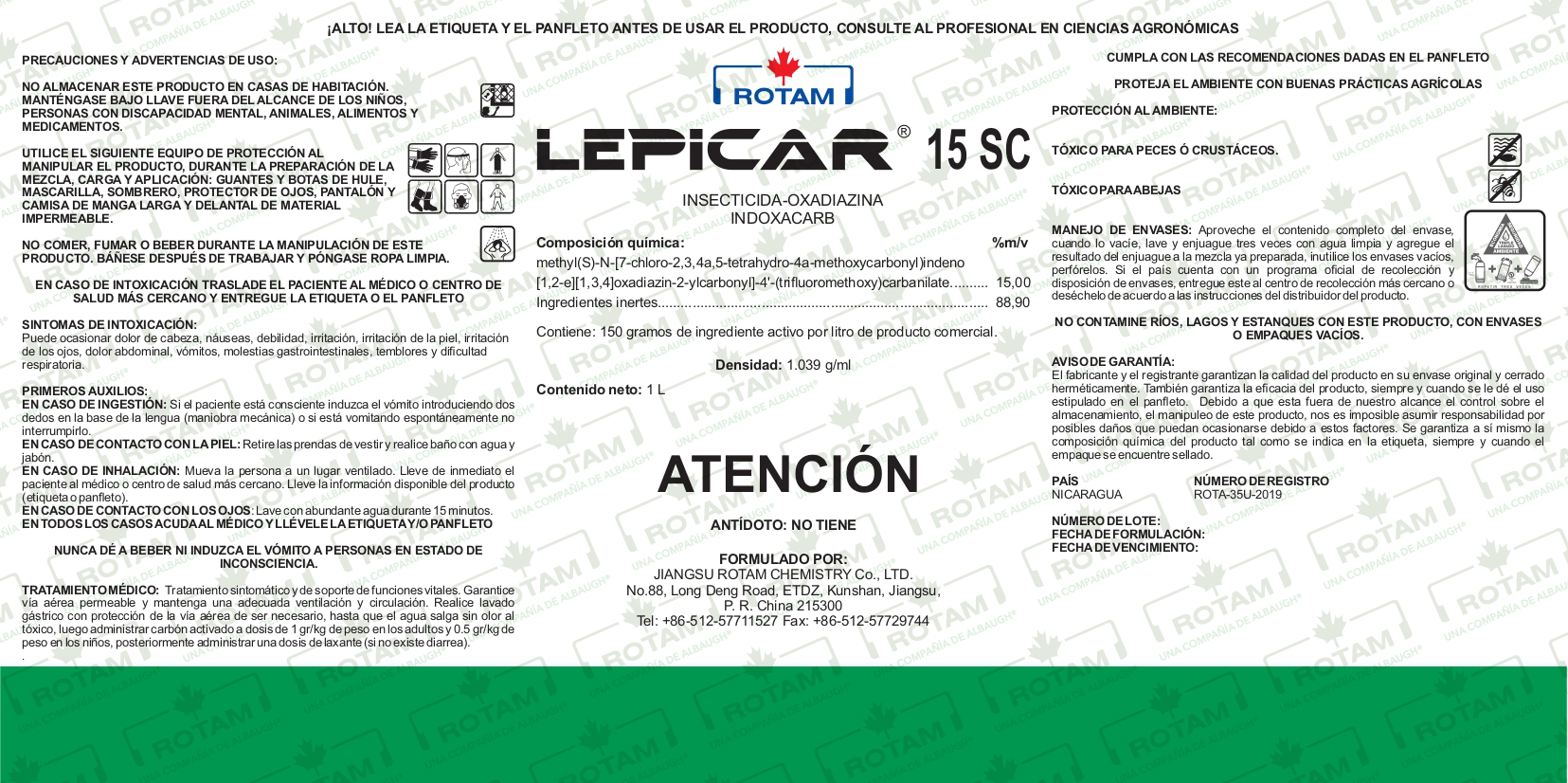 LEPICAR 15 SC es un insecticida para el control de lepidópteros, pertenece a las oxadiazinas.