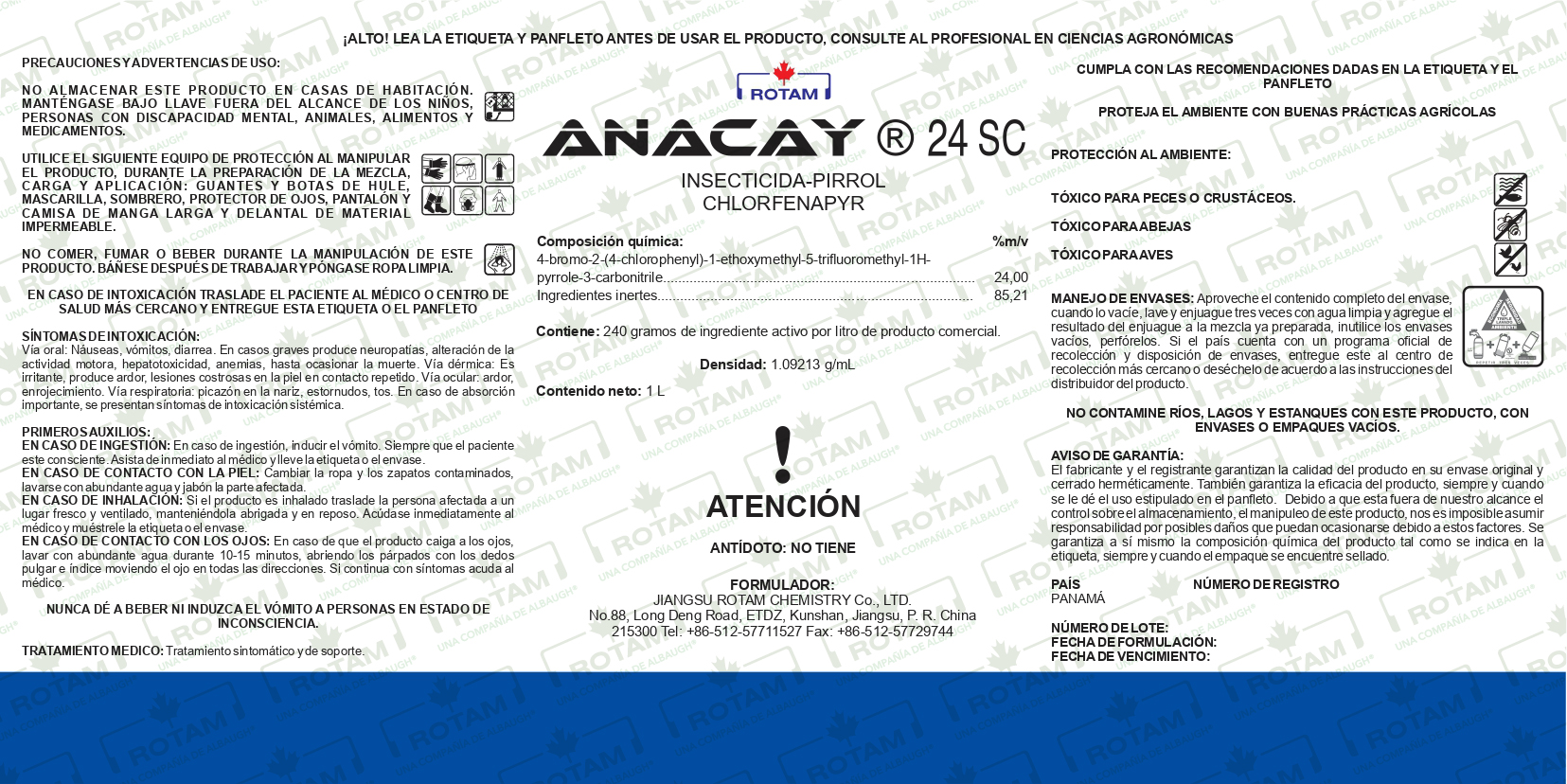 - ANACAY® 24 SC is an insecticide-acaricide of the pyrrole family, non-systemic that works by ingestion and contact and is especially effective in the control of leaf eaters.