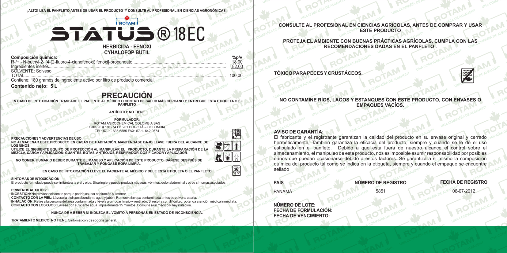 STATUS 18 EC Post-emergent herbicide of systemic and selective action for the control of grasses in irrigated and rainfed rice.