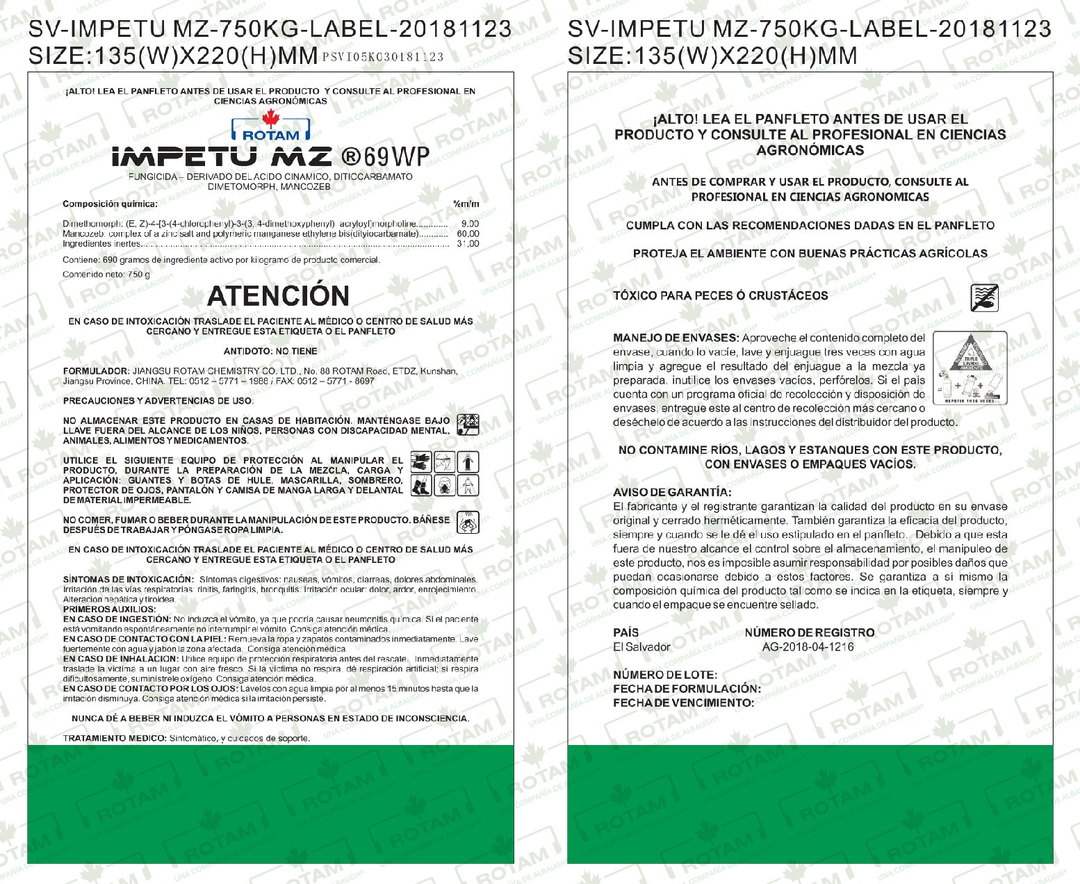 IMPETU 69 WP is a local systemic fungicide with good contact activity and antisporulant, penetrates quickly to the tissue and translocates to the edge of the leaves. Control downy mildew in leaves and stem. Dimethomorph is specific for the control of oomycetes, especially Peronosporaceae and Phytophthora sp., but does not control Pythium sp. It stops all growth requiring cell wall synthesis to cause dose-based cell lysis, stops the growth of germinating hyphae, the development of sporangia, apresorios, sporangiophores and oospores, except the formation of oospores. Dimethomorph affects all known breeds of Phytophthora.