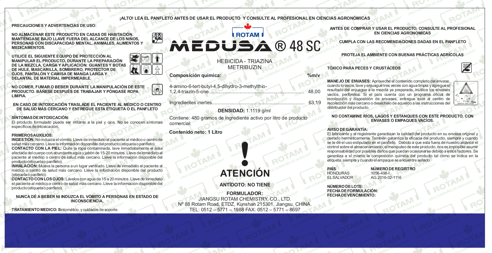 - MEDUSA 48 SC is a herbicide that is absorbed by the root and by the sprayed tissue, and is transported to the upper tissues of weeds, it is used for the control of susceptible weeds grasses and broad leaves in crops such as soybeans, vegetables, potatoes and sugar cane.