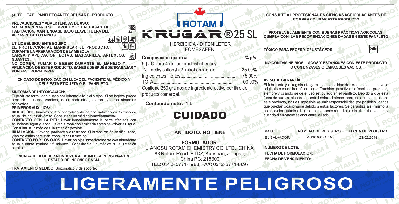 KRUGAR® 25 SL is a contact herbicide, selective to beans and soybeans, for the control of broadleaf weeds in early post-emergence (1 to 4 leaves). It acts on the leaves, inhibiting the enzyme protoporphyrinogen oxidase (PPO, PROTOX), causing desiccation and necrosis of the foliage. It is recommended to apply in the early hours of the morning so that the product enters the leaves of the weed, redistributes inside them, and then, when the luminosity increases, exerts its herbicidal effect.