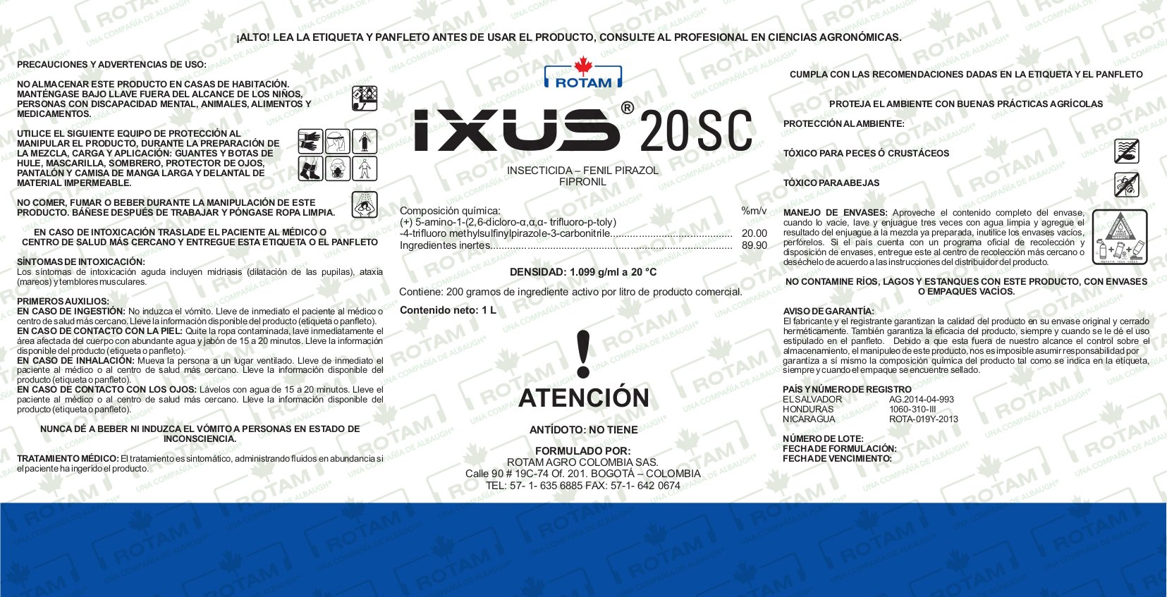 ContáctenosIXUS 20 SC El fipronil del IXUS 20 SC es un excelente insecticida de amplio espectro de control con más de 250 especies de plagas en 60 cultivos.