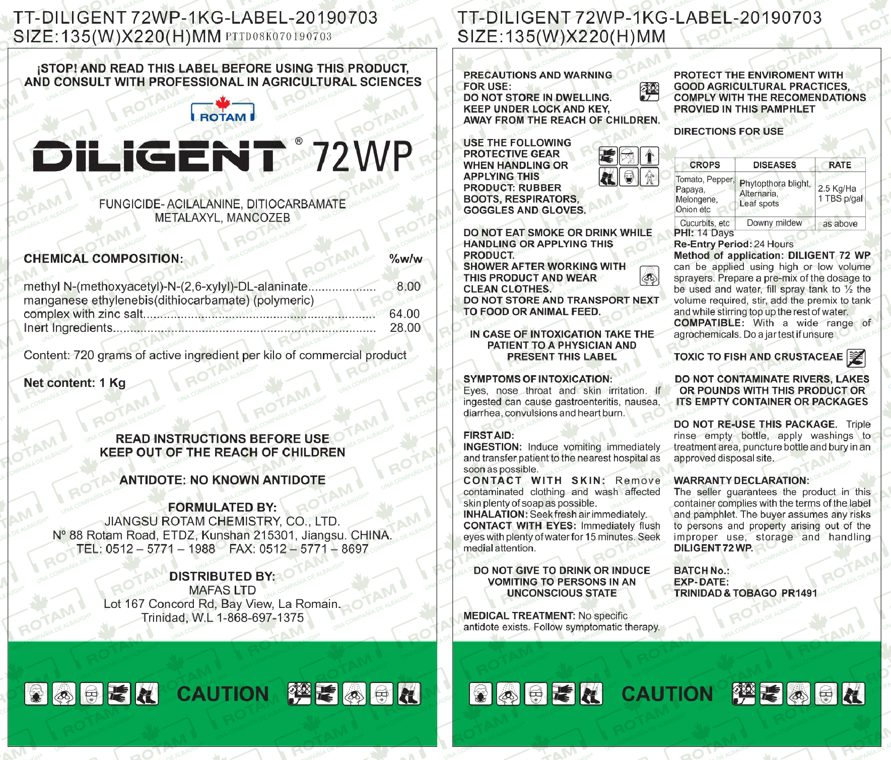 Modo de acción: DILIGENT® 72 WP es un fungicida sistémico con acción protectora y curativa. Se utiliza en el control de enfermedades de los patógenos Peronospora en el aire y en el suelo.