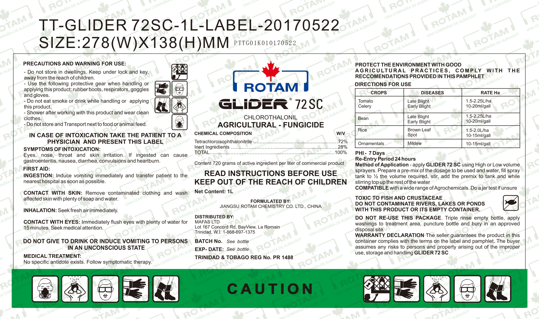 Modo de acción: GLIDER® 720 SC es un fungicida foliar no sistémico con acción protectora para el uso preventivo de diversas enfermedades en cultivos como tomates, arroz y diversas hortalizas.