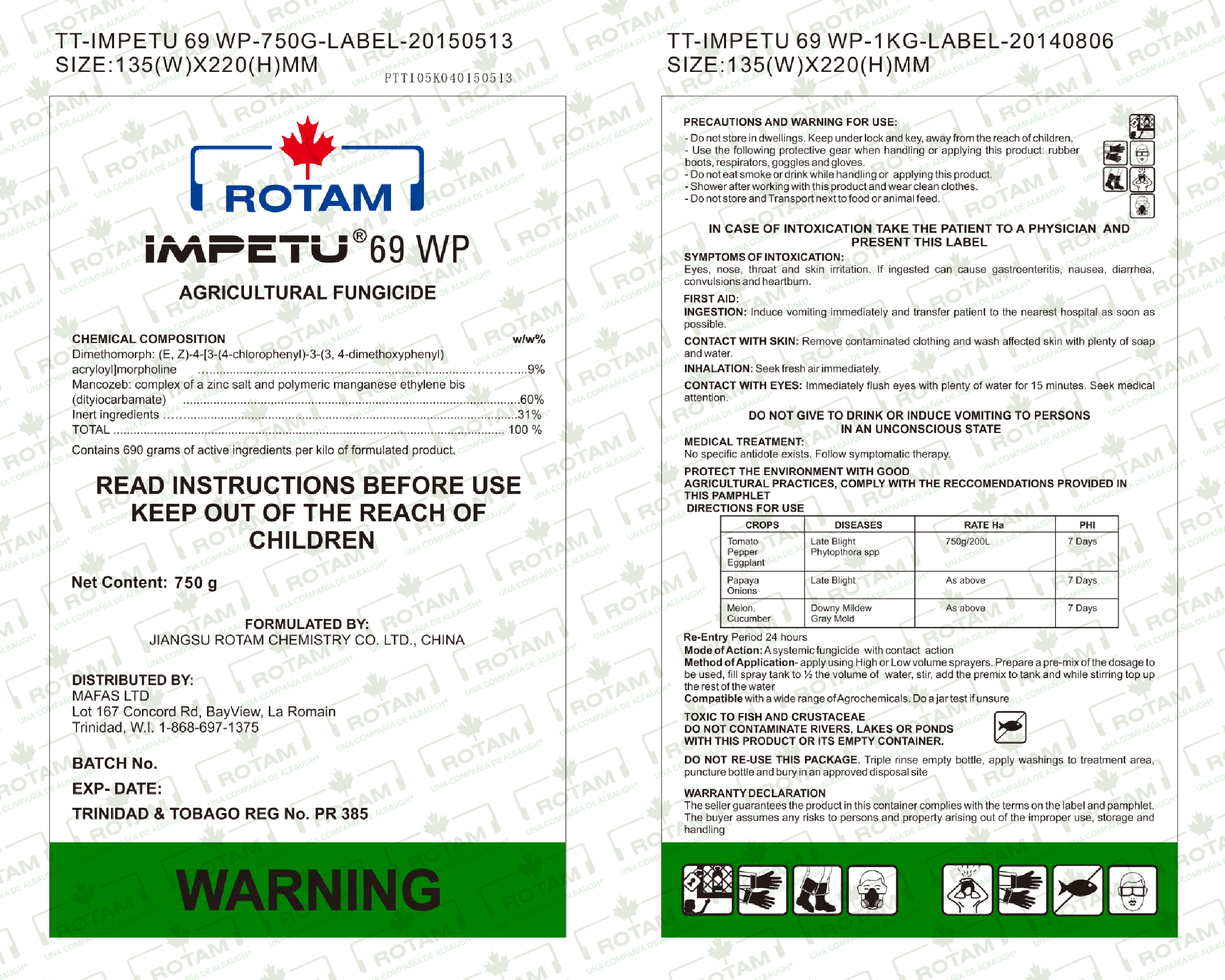 IMPETU® 69 WP es un fungicida sistémico local a base de Dimetomorf y Mancozeb de buen contacto y actividad antiesporulante, penetra rápidamente en el tejido y se trasloca hacia el borde de las hojas.