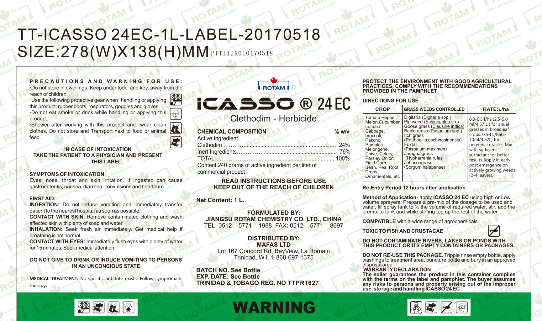 ICASSO® 24 EC es un herbicida post-emergente con Cletodim para matar pastos, el cual actúa sistémicamente afectando los tejidos meristemáticos inhibiendo la división celular.