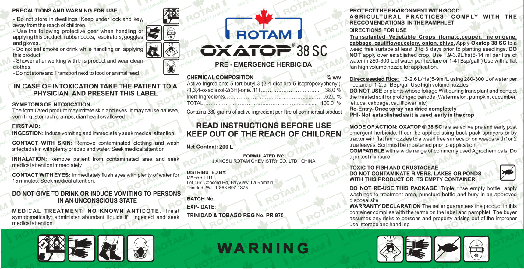 OXATOP® 38 SC es un herbicida selectivo pre y post-emergente con Oxadiazón para uso agrícola con acción de contacto.