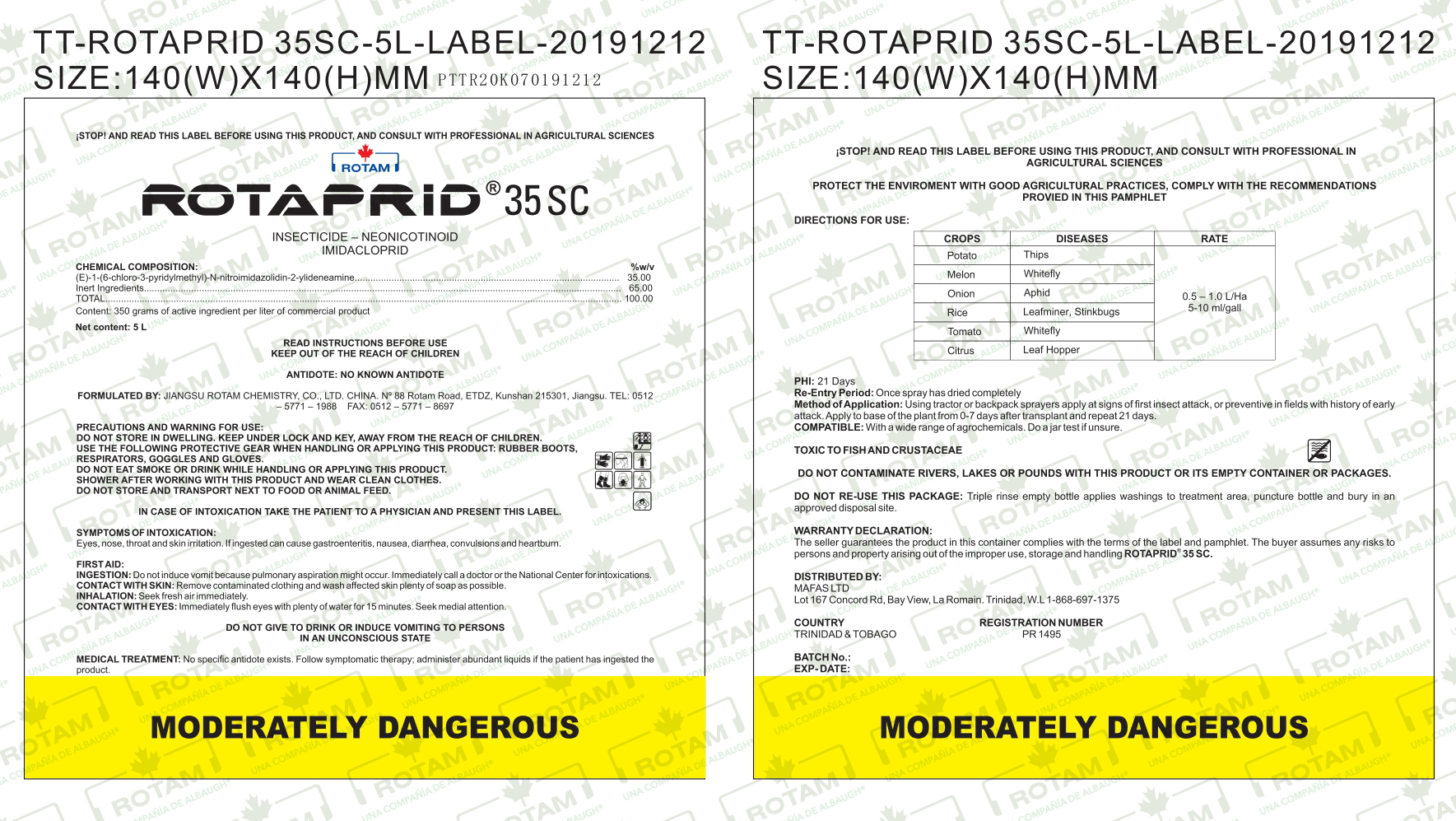 Modo de acción: ROTAPRID ® 35 SC es un insecticida translaminar sistémico con acción estomacal y de contacto. Las plantas toman imidacloprid fácilmente por las raíces, distribuyéndolo acropetamente.