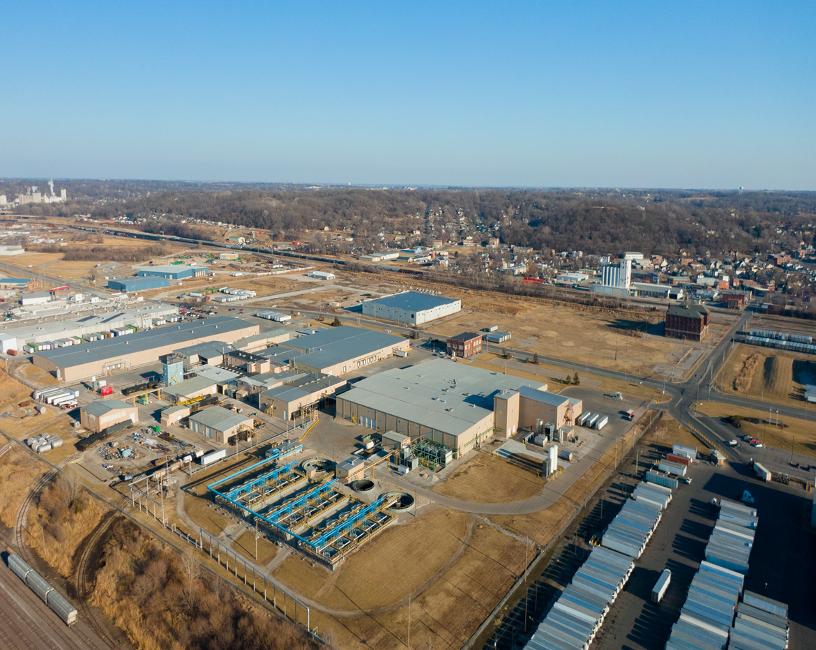 With more than 600,000 square feet under roof on 75+ acres, our North American manufacturing facility in St. Joseph, Missouri, is home to four processing plants with seven million gallons of tank capacity, bulk tank truck loading capability, three railroad spurs, and a fleet of bulk tanker trucks. It also houses a state-of-the-art formulation lab, glyphosate-synthesis capability, herbicide esterification and formulation capability, amination, and fungicide and insecticide formulation.
